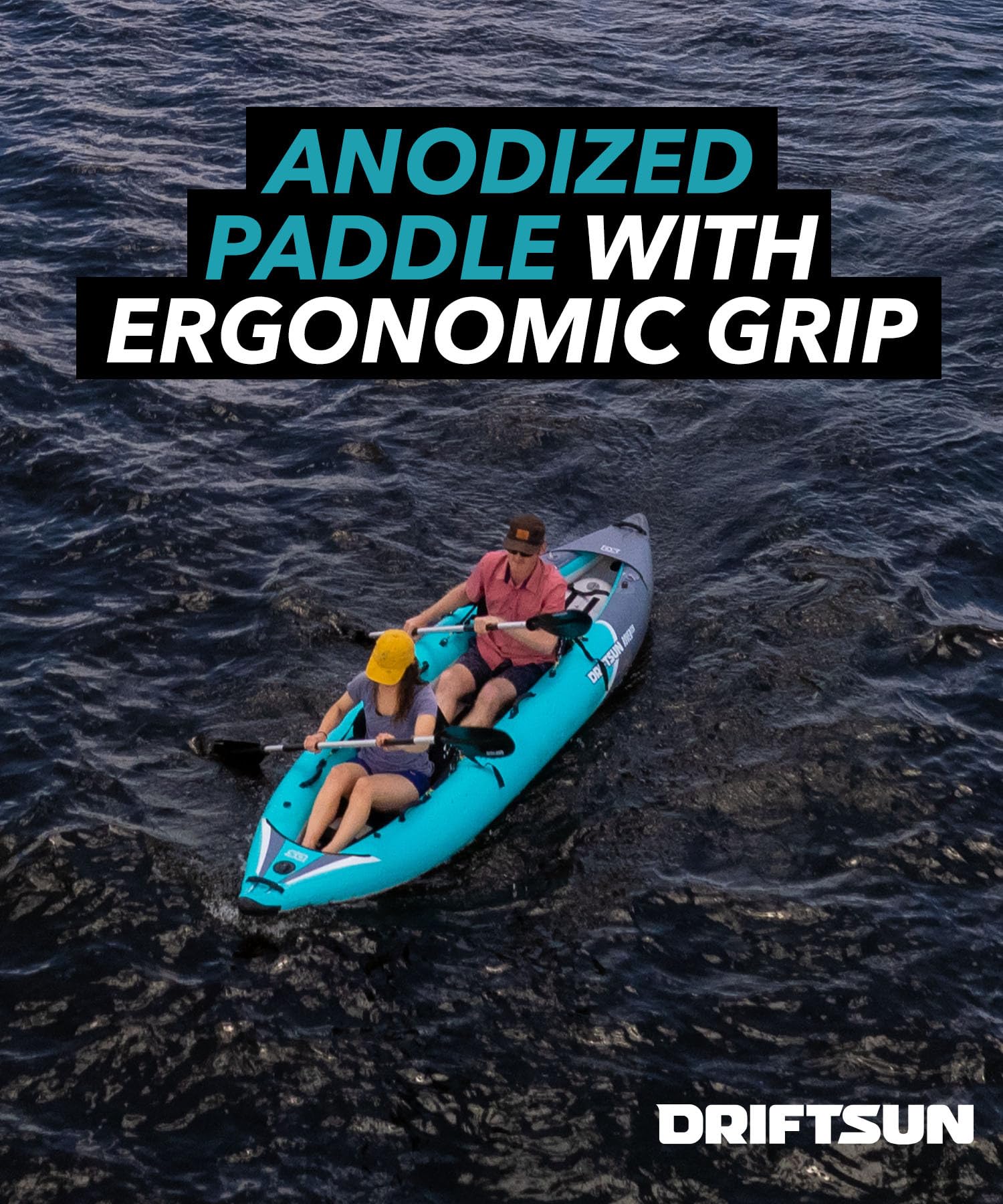 Conquer class III & IV rapids or cruise flat water with the Driftsun Rover Inflatable White Water Kayak. Available in single (Rover 120) and tandem (Rover 220) models, this durable PVC kayak features a high-pressure drop-stitch floor for rigidity, reinforced double-layer PVC hull, and a rocker profile that excels in both rough and calm conditions. Equipped with EVA padded seats, adjustable aluminum paddles, an action camera mount, plus a double-action pump and travel backpack—all included—so you can paddle hard, stay stable, and capture every adventure.