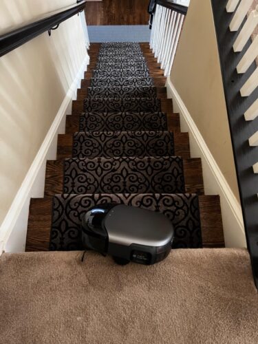 After reading some comments on Reddit, I realized that it's a common problem with robot vacuums to not work on dark carpets or carpets with black patterns on them, which I have in one area of my living room. This is because the robot vacuum has a sensor that prevents it from falling off the stairs or drop-offs. These robots can't distinguish that from a black carpet or a real drop. The Eufy S1 is not immune to this issue. It skips certain parts of my area rug. It pauses, reverses, and goes around them. I think with all the built-in LIDAR and cameras on board, I was hoping it can be smarter than that. Now, I thought it would be safe to leave the robot to vacuum my second floor and not fall off the stairs. Boy, was I wrong! Luckily, it only fell one step off the stairs. To mitigate this, I had to set up a virtual wall before the stairs but I now had to remember to manually vacuum the remaining 6-inch gap beyond the virtual wall. Here’s the irony here. It stops on very dark carpets because of drop sensor but wasn’t effective at keeping it from falling off the stairs.