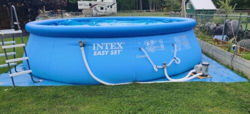 Also make sure to purchase the cover for this pool it acts as a solar panel and heats the water up quite nicely and also keeps stuff out of the pool. We think it is totally worth the price