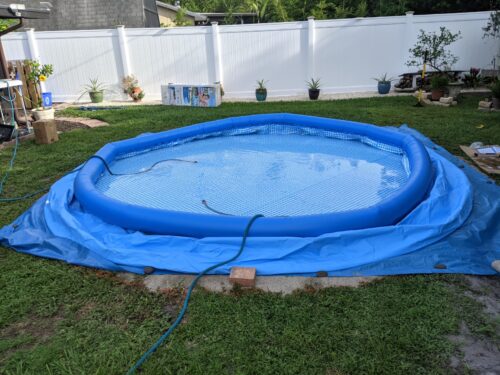 Our first real pool as adults, so setting up the pump took about 20 mins. We wanted to make sure we got it right.