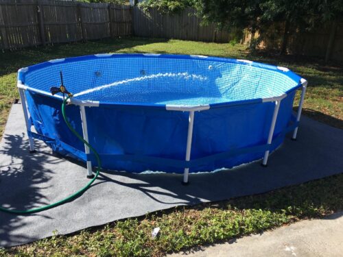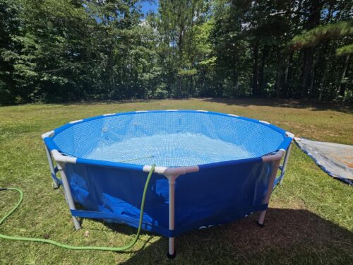 We do not have room for a conventional pool in our yard and did not want to spend $35,000 on a permanent small pool. This solution has worked out. We can take it down in the winter and box it up.