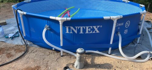 One caution on chlorine. A normal 3-inch chlorine tablet is designed to treat 10,000 gallons of water. This 10' x 30" pool holds a maximum of 1,500 gallons when filled to the brim. I estimate I have about 1,200 gallons in our pool at roughly 24” depth. It’s easy to over chlorinate the water, which will cause discomfort for swimmers and shorten equipment life.