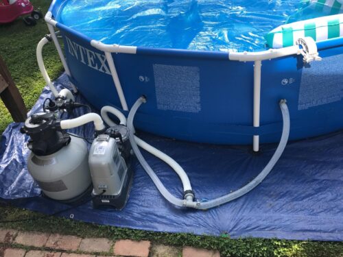 PUMP/FILTER - Get a better one, the one that comes with the pool is undersized and underpowered. For $150 you can save yourself a lot of grief trying to keep the pool clean. I'd also recommend a pool cover, which makes keeping the pool clean easier as well. EDIT - we also purchased a vacuum for the floow ($35) to get the dirt off the bottom, also WELL WORTH IT.