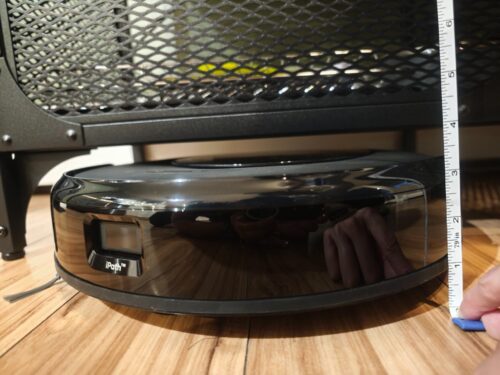 The Eufy is slimmer than the Roomba. I find that the Eufy tends to get stuck less frequently than the Roomba. For example, it can go under my coffee table that sits close to the floor, whereas the Roomba would get it’s front stuck under the coffee table and signal for help. The Eufy has gotten itself stuck about twice since I’ve had it, and each time it is under the chairs at my dining room table… it is a little wide and has gotten stuck between the legs. The Roomba frequently gets itself into jams, and only seems to turn left when trying to get out of them…