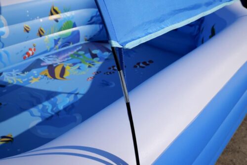The underwater ocean design is vibrant and attractive, adding a playful touch that kids will definitely love. Setup is straightforward, and the seats and backrests inside make it easy to relax and enjoy.