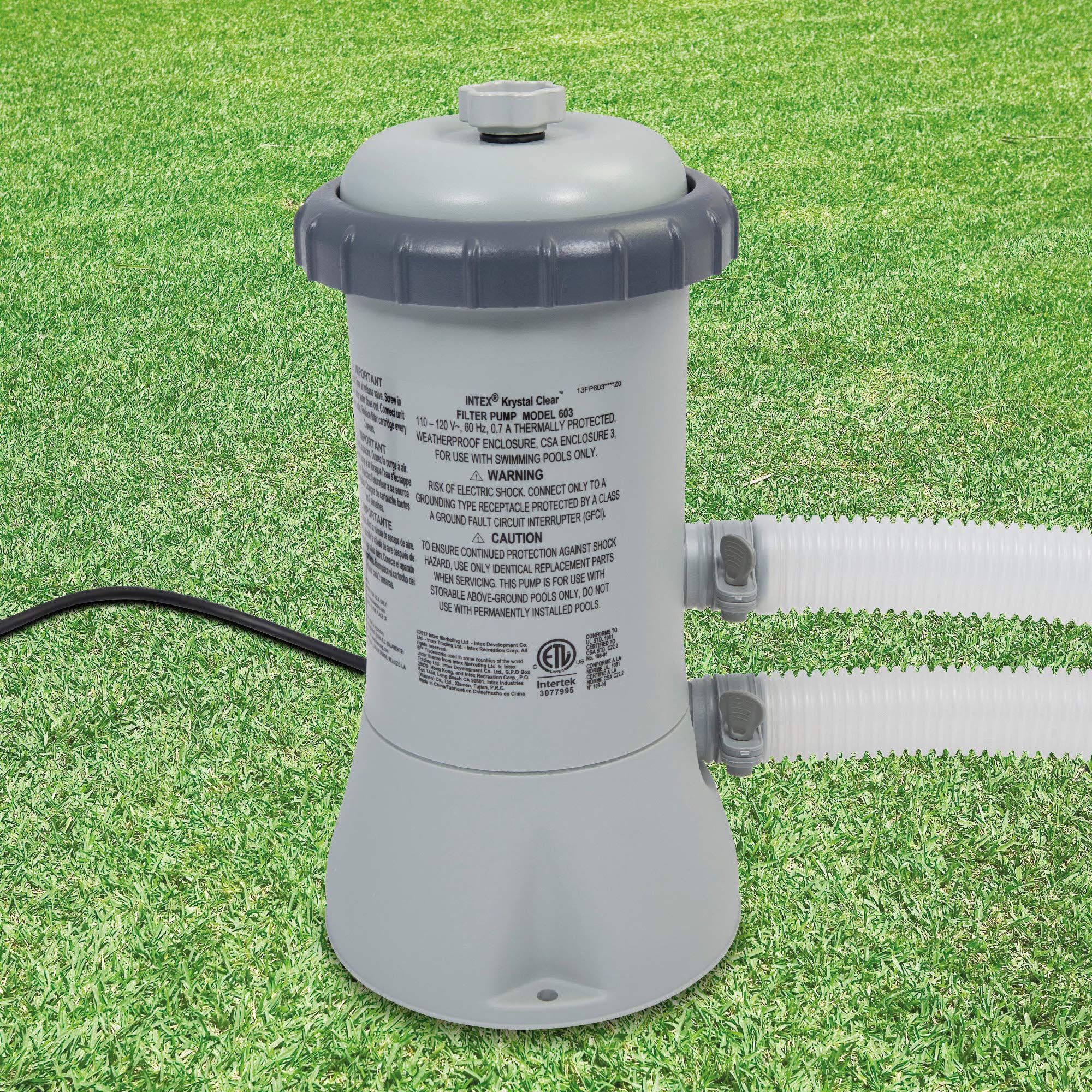 • Replace the Pump that comes with it with the Intex C1,000 Pump. The pump included is woefully under powered. The C1,000 circulates more water per hour (3x’s faster than what’s included) so you don’t have run it as much.