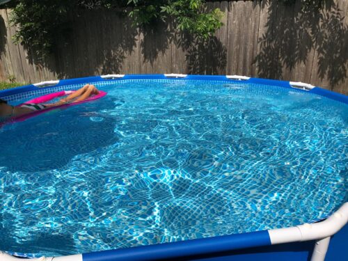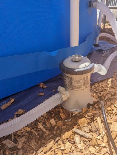 One caution on chlorine. A normal 3-inch chlorine tablet is designed to treat 10,000 gallons of water. This 10' x 30" pool holds a maximum of 1,500 gallons when filled to the brim. I estimate I have about 1,200 gallons in our pool at roughly 24” depth. It’s easy to over chlorinate the water, which will cause discomfort for swimmers and shorten equipment life.