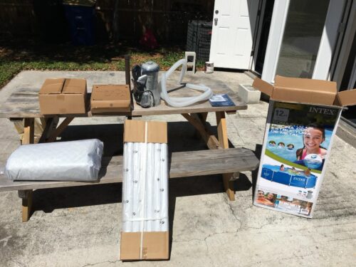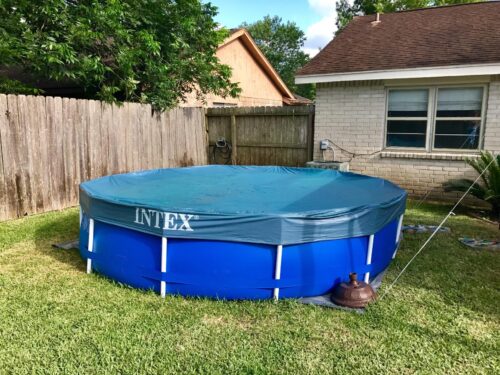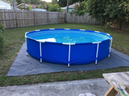 Pool with pump, net, vacuum, cover, and tablets and I’m under $300. I will have to eventually buy more tablets and I’m considering getting the 1000 gph pump with skimmer but this thing is so low maintenance I’d be doing more out of intrigue. Plus the skimmer hangs on the edge and takes pool space away. We’ll see. Fun easy little project, kids love it, 4 adults fit easy, low maintenance.